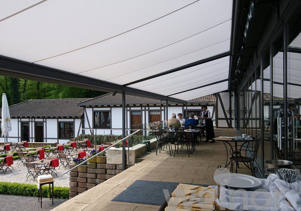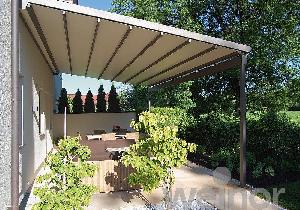 - Pergola-Markisen: Großraumwetterdach - Zuverlässiger Regenschutz ab 14° Neigung