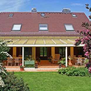 Die Terrasse professionell zu überdachen hat viele Vorteile. Neben der unbesorgten Lagerung der Outdoor-Möbel spricht auch der Schutz der Grünpflanzen auf der Terrasse für die Investition in ein Terrassendach. Und nicht nur zum Schutz gegen Niederschlag und Wind ist eine Überdachung sinnvoll – sie hilft auch als Träger hochwertiger Sonnenschutz-Elemente, die Terrasse vor zu starker Sonneneinstrahlung zu schützen. Dafür werden einfach passende Markisen am Terrassendach angebracht. Terrassendächer können auch als Befestigung für windschützende Vertikalmarkisen genutzt werden, sind zudem beheizbar und können beleuchtet werden, was die Nutzungsmöglichkeiten der Terrassenfläche deutlich erhöht.